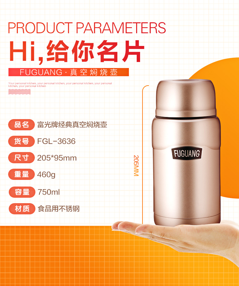 名稱:750ML富光牌經(jīng)典真空燜燒壺