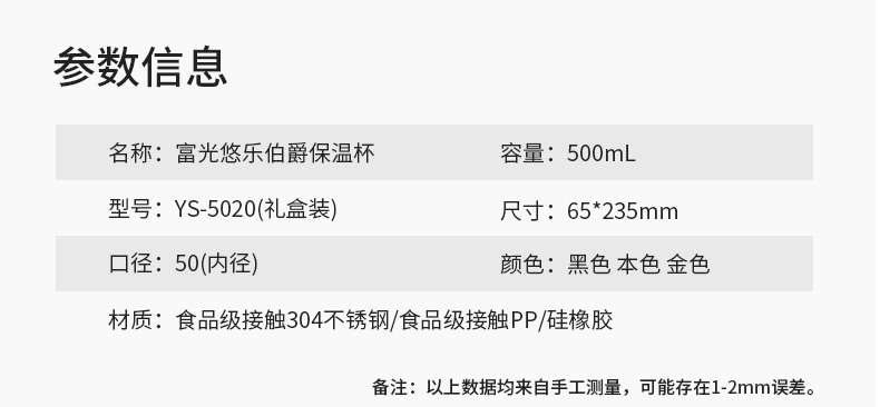 名稱:富光悠樂伯爵真空保溫杯500mL禮盒