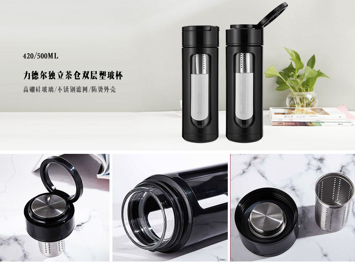 力德爾獨立茶倉雙層塑玻杯