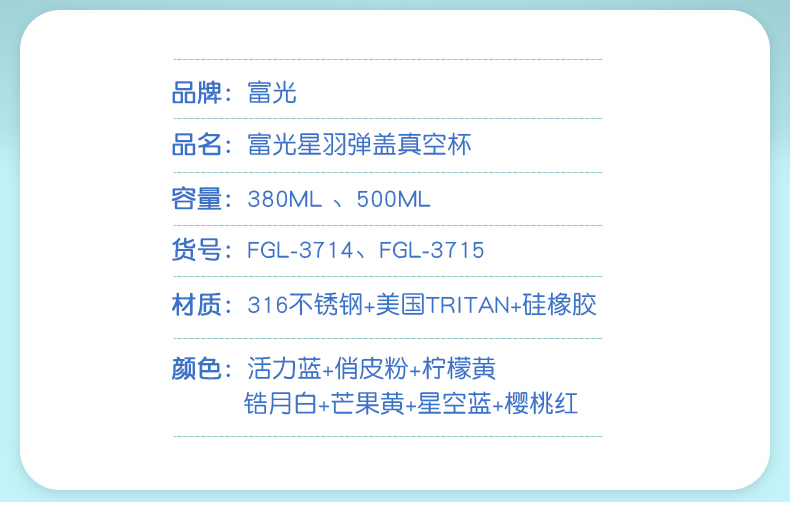 名稱:富光星羽彈蓋真空杯500ml