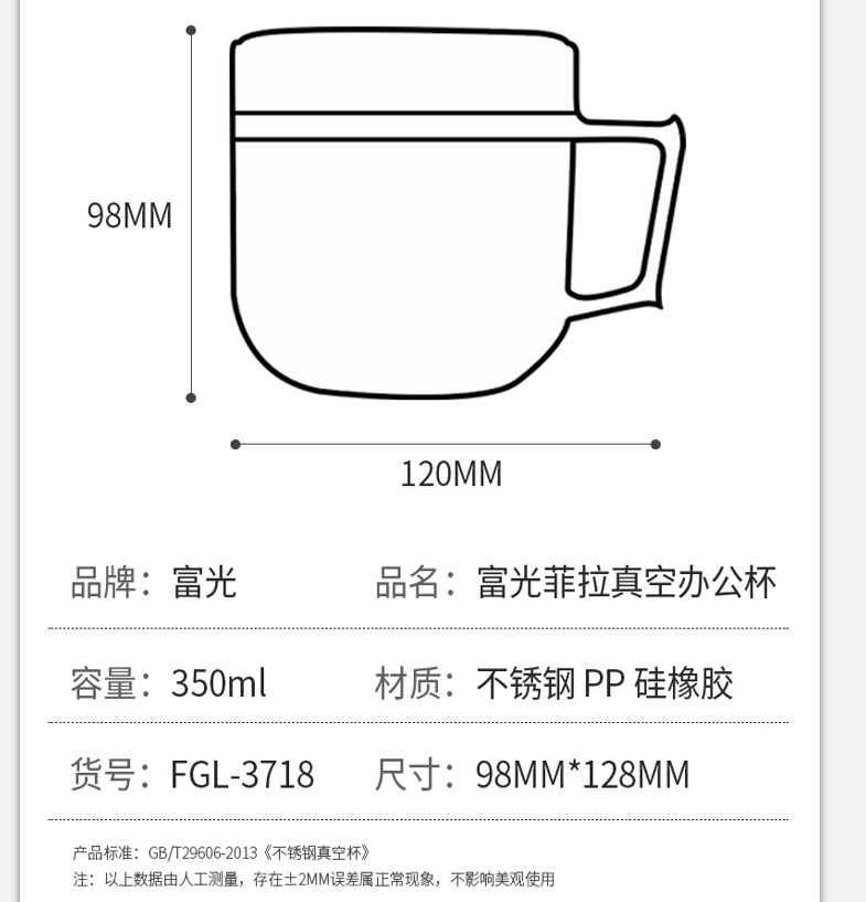名稱:富光菲拉真空辦公杯350ml