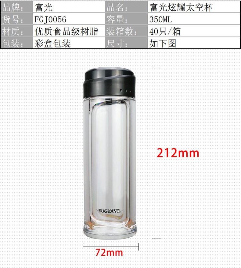 名稱:富光健牌軒宇口杯350ml