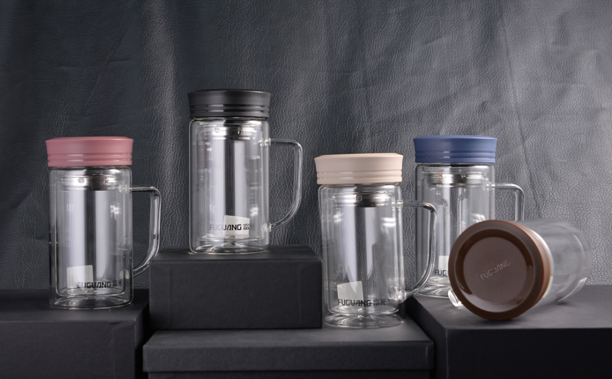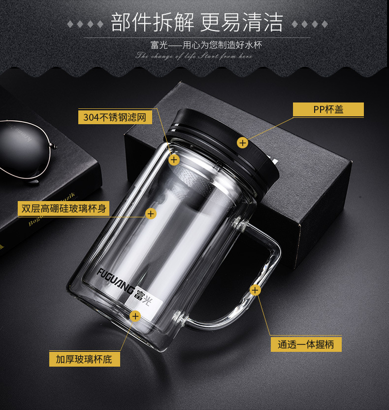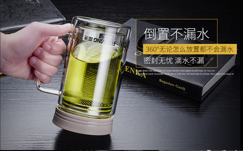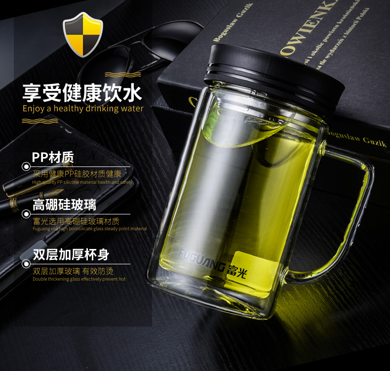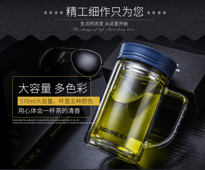致格雙層辦公玻璃杯570ml