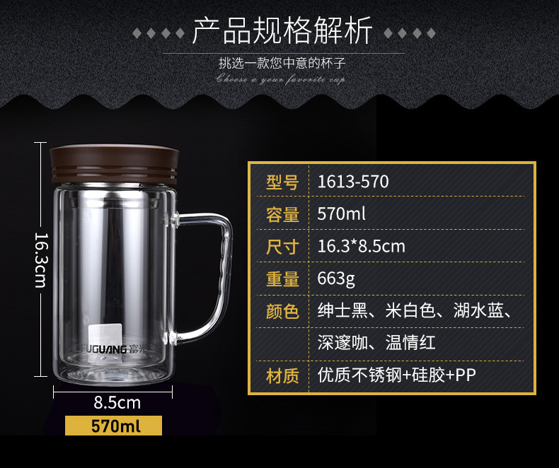 名稱:致格雙層辦公玻璃杯570ml