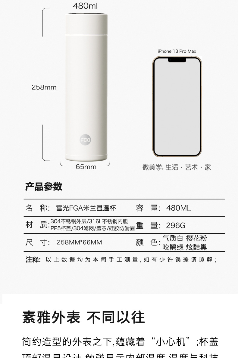 名稱:米蘭溫顯真空杯480mL
